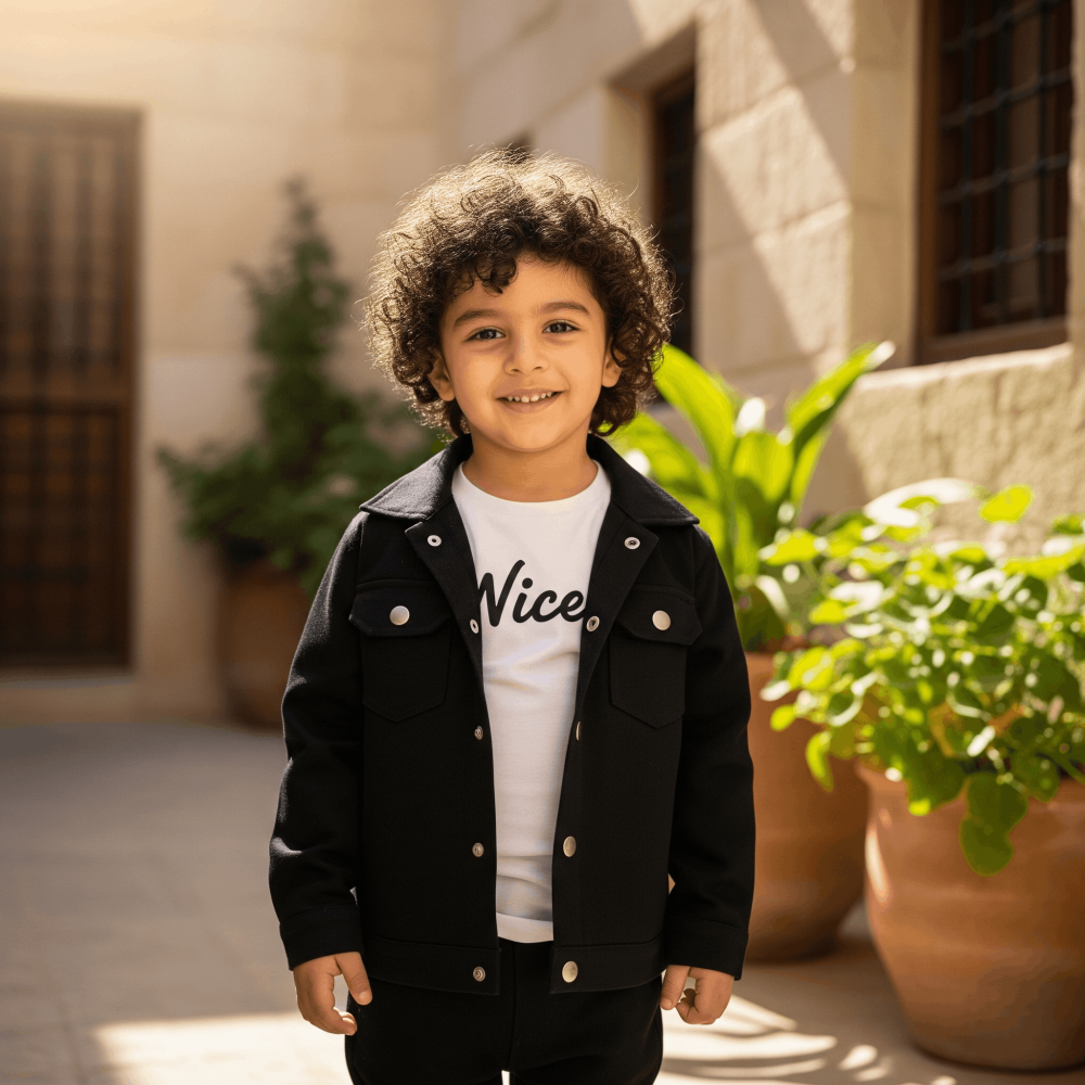 طقم ولادي شتوي أنيق ومثالي للمناسبات الخاصة، مكون من 3 قطع: جاكيت أسود بتصميم عصري مع أزرار لامعة، تي شيرت أبيض، وبنطلون مريح يتناسب مع الإطلالة. الطقم مثالي للأطفال من عمر سنة إلى 6 سنوات، ويوفر الراحة والأناقة في الوقت ذاته. مصمم من خامات عالية الجودة تمنح الطفل حرية الحركة والشعور بالدفء في المناسبات الشتوية.
