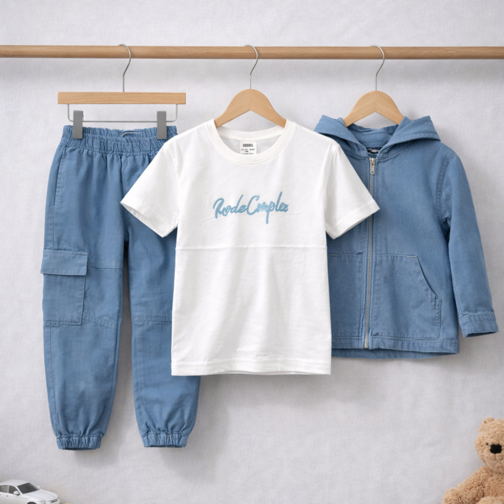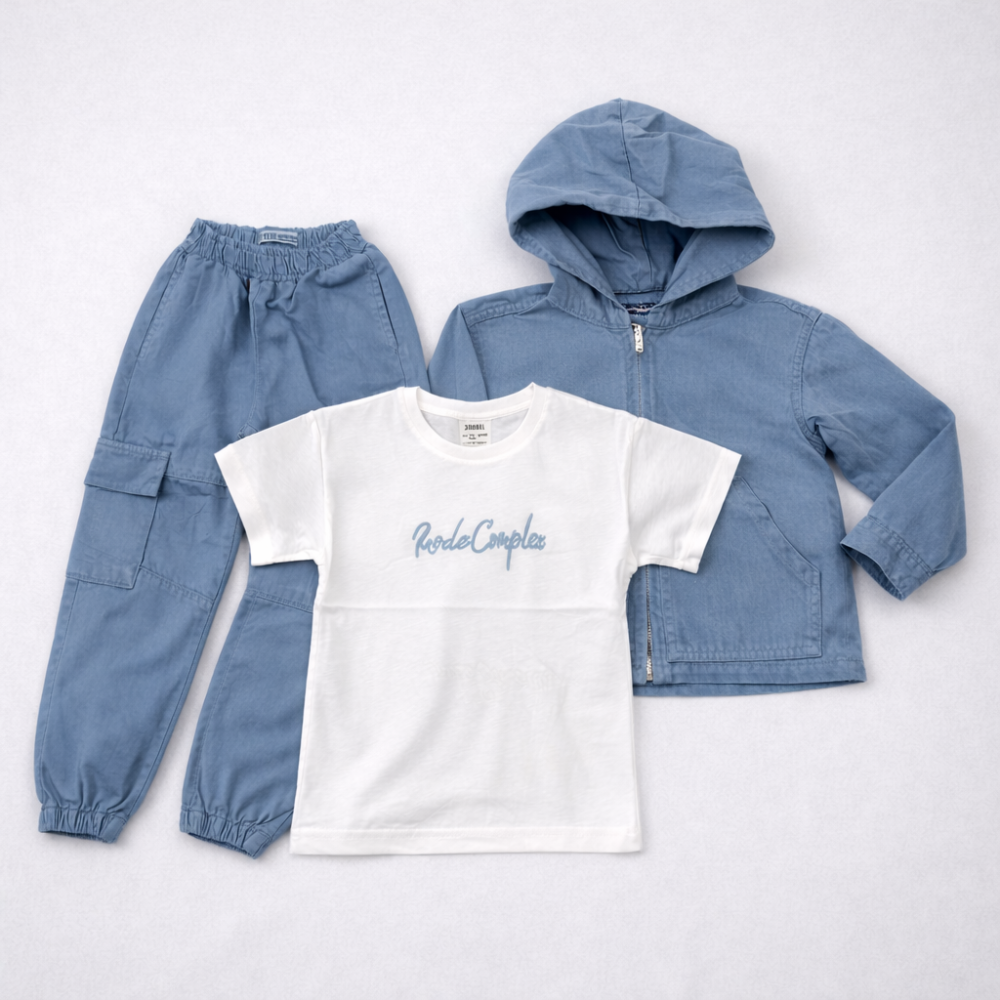 اجعل طفلك يظهر بأجمل إطلالة مع هذا الطقم الرائع الذي يتكون من جاكيت ب cap وحواف مرنة، تيشيرت مطبوع بشعار "Rodeo Couples"، وبنطلون كارجو مريح. يتميز هذا الطقم بتصميم عصري يجمع بين الأناقة والراحة، ليكون خيارًا مثاليًا لجميع الأنشطة اليومية والمناسبات.